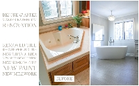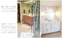 This remodeled bathroom has the look and feel of a luxury hotel bath. From the heated floors to the heated towels, the owners are pampered. This look was achieved by removing the outdated whirlpool tub and replacing it with a freestanding soaking tub, straightening the shower walls, removing soffits over the vanities and so much more.